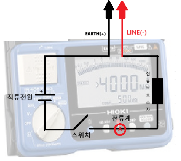 3. 붉은색 리드선은 측정할 전로에 접촉시킵니다.