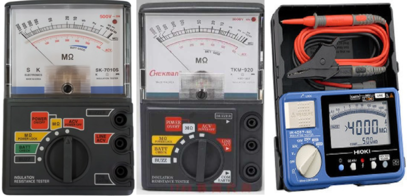 모델별로 시험전압의 크기가 다르기 때문에 무조건 크다고, 작다고 좋은것이 아니라 보통 많이 사용하시는 TKM-910, TKM-920을 예로 들면 TKM-910은 500V/1000MΩ 이고 TKM-920은 1000V/2000MΩ로 측정할 수 있는 범위가 달라진다. DC시험 전압이 고정되 있는 절연저항측정기가 있는반면 DC시험 전압을 선택 사용할 수 있는 측정기도 있다.