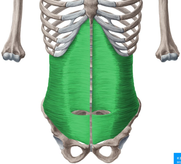 - 정지 : linea alba, aponeurosis of internal abdominal oblique muscle, pubic crest, pectineal line of pubis
