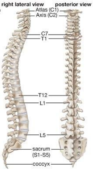 C : 경추, T : 흉추, L : 요추, S : 천추, C : 미추