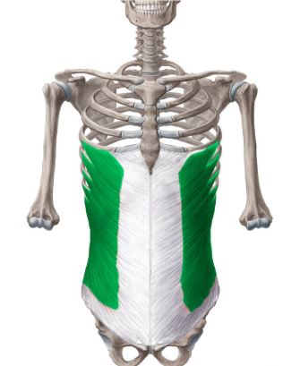 - 기능 : bilateral contraction : trunk flexion, expiration, compresses abdominal viscera / unilateral contracion : trunk lateral flexion + rotation