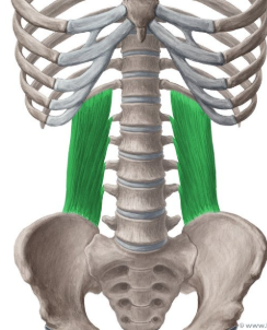- 기능 : bilateral contraction : fixes 12 ribs during inspiration, trunk extension / unilateral contration : trunk lateral flextion